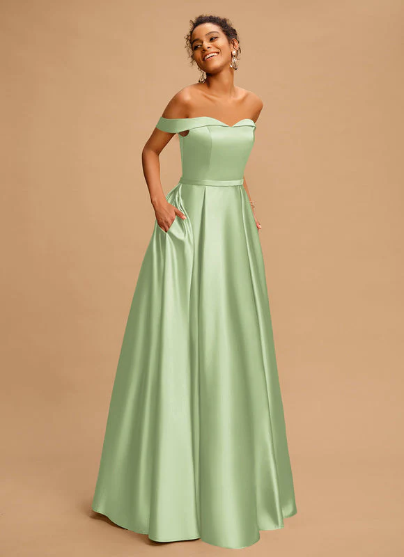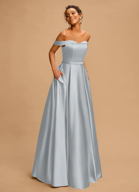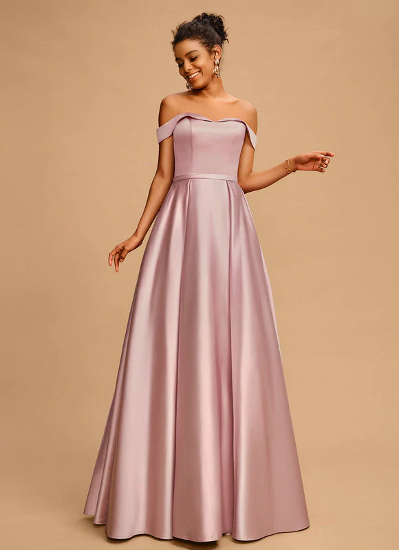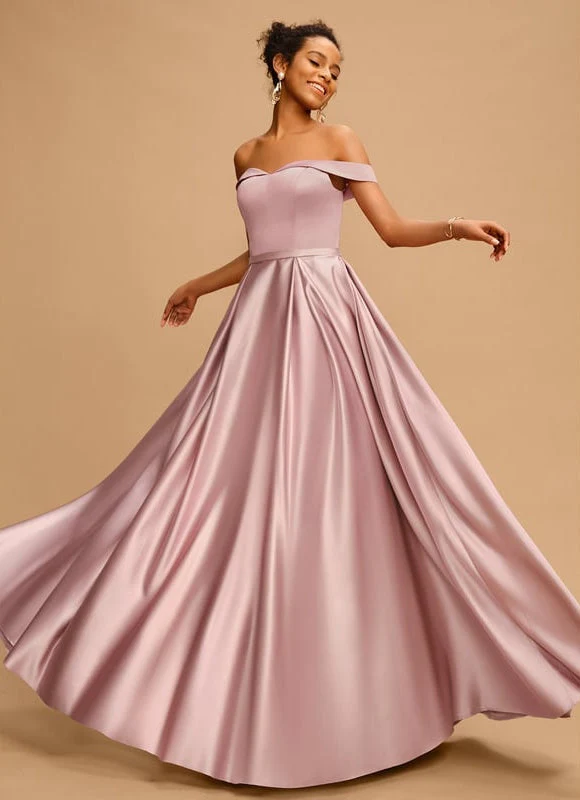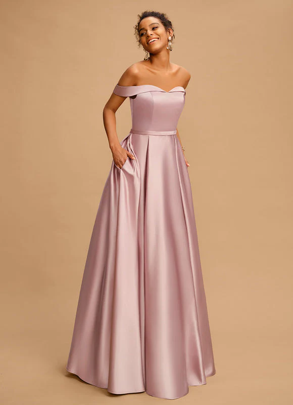 Robe Satinée Rose Poudrée À Épaules Dénudées