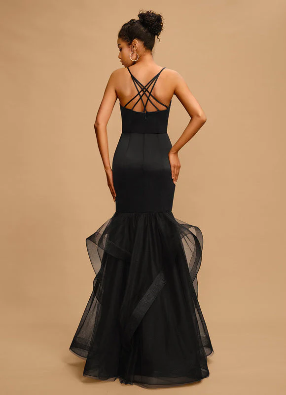 Robe Sirène Chic En Tulle Noir – L’Élégance Intemporelle
