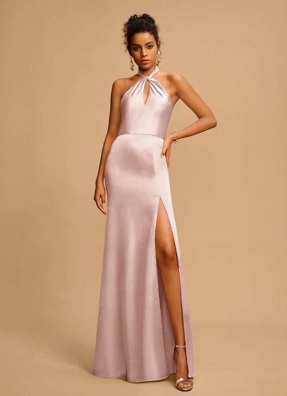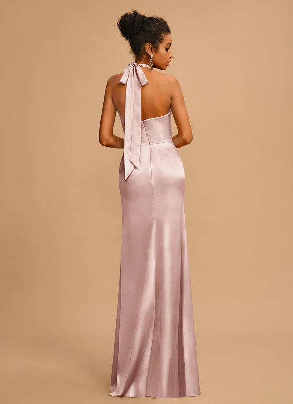 Sublimez votre silhouette avec notre robe sirène en rose poudré, l’alliance parfaite entre élégance et sensualité. Son tissu satiné extensible épouse délicatement vos courbes, tandis que le col licou noué crée un décolleté croisé raffiné qui attire tous les regards. La fente latérale ajoute une touche de glamour tout en facilitant vos mouvements. Cette robe longue ras du sol offre une teinte douce et intemporelle qui flattera toutes les carnations.
