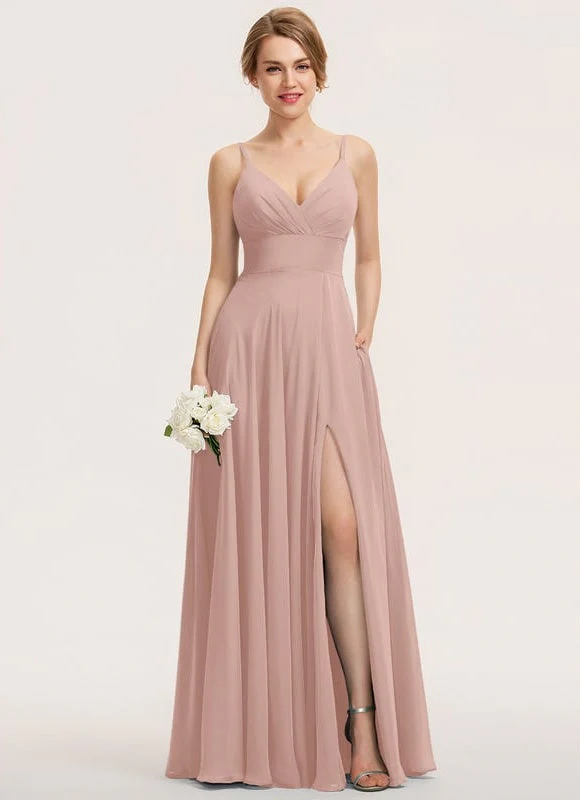 Robe sirène rose poudré à fente : élégance pour vos événements spéciaux