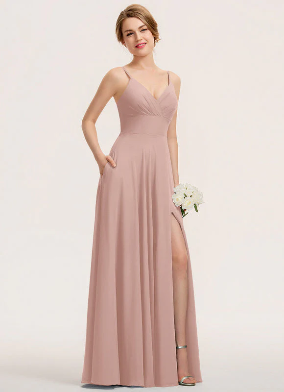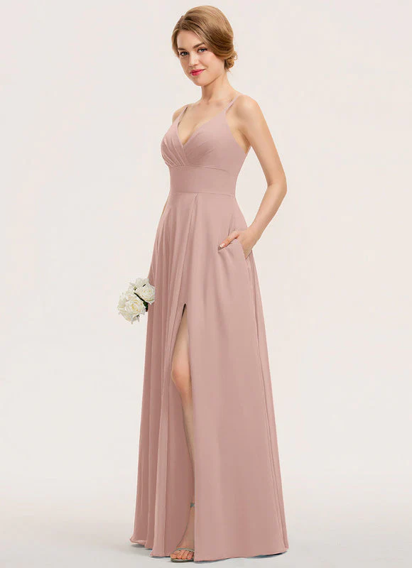Découvrez notre robe sirène en rose poudré qui allie féminité et élégance. Cette robe longue au décolleté en V flatteur met en valeur votre silhouette grâce à sa coupe étudiée et sa taille marquée. La fente latérale ajoute une touche de sensualité maîtrisée, tandis que les fines bretelles spaghetti offrent un maintien parfait tout en conservant une allure aérienne. Un détail pratique : des poches discrètes sont intégrées pour votre confort.