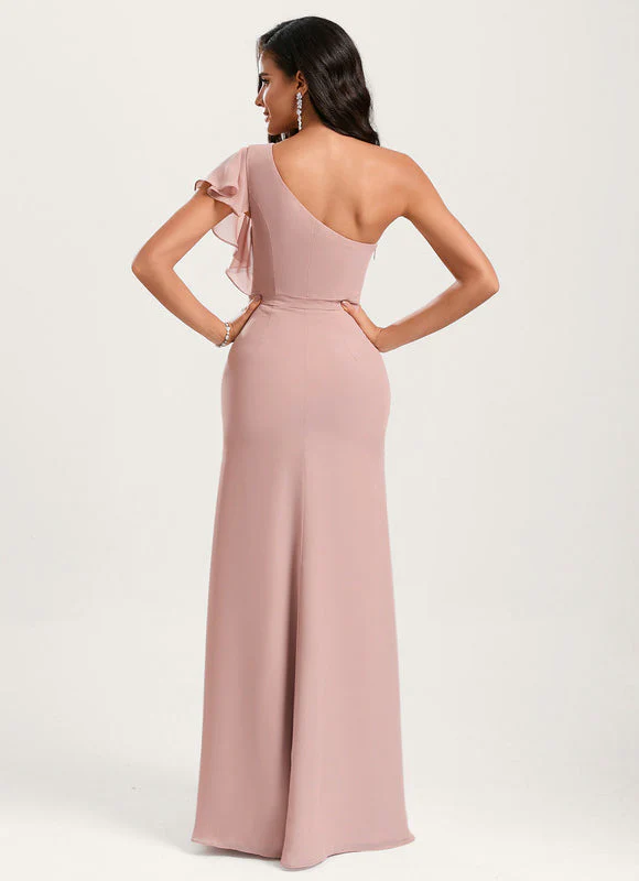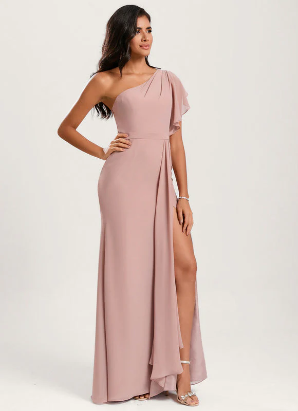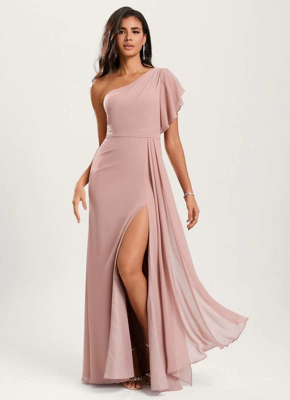 Sublimez votre silhouette avec cette magnifique robe sirène qui allie élégance et féminité. Sa coupe asymétrique à une épaule apporte une touche de modernité tandis que le tissu en mousseline légère épouse délicatement vos courbes. Le drapé fluide se prolonge jusqu’au sol avec une fente latérale qui révèle subtilement votre jambe. Sa teinte rose poudré, à la fois douce et sophistiquée, flattera toutes les carnations et s’adaptera parfaitement à vos événements les plus prestigieux.
