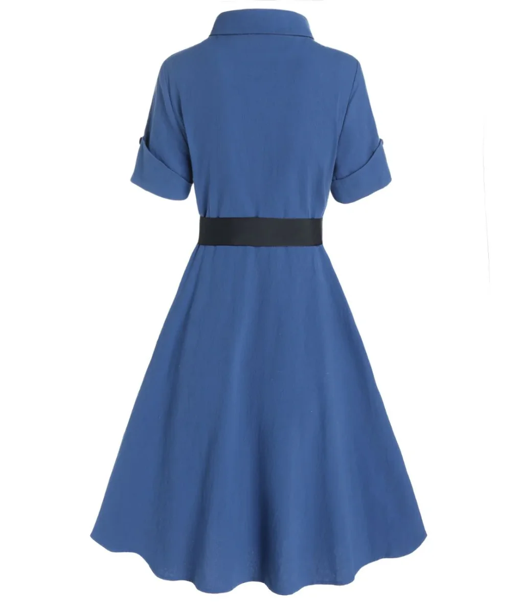 Dans un bleu encore plus profond et océanique, la robe vintage années 40 unie bleu saura vous orner de charme rétro issu de l’époque renaissante du prêt-à-porter et ces fameuses robes années 40 en vogue toujours actuellement ! pour un look en robe vintage, celle-ci est une merveille classe et aventureuse.
