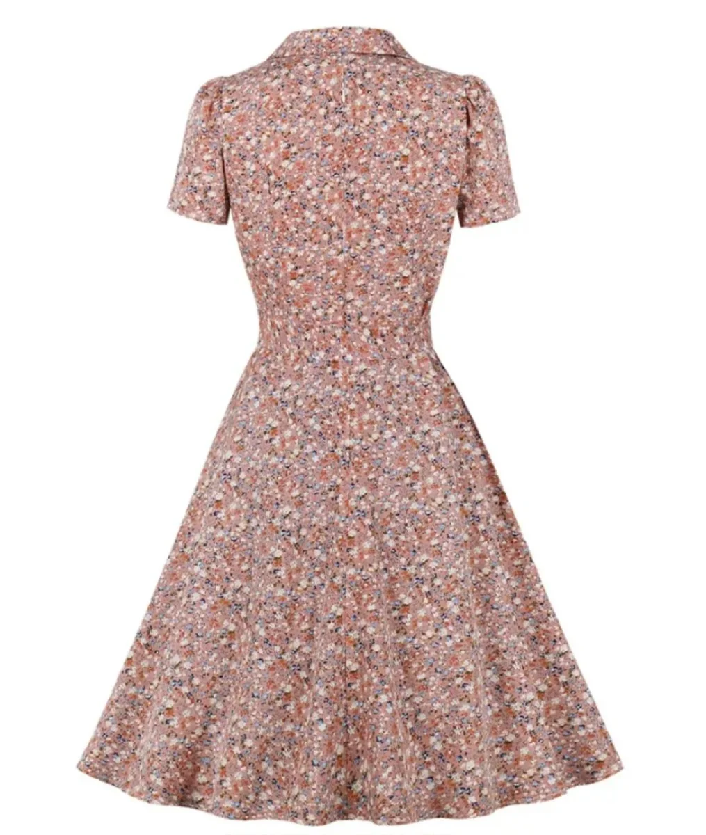 La robe swing années 40 est une robe au caractère vintage dans l’âme et au col relevé, ce qui vous amène à la porter aussi bien lors d’une réunion familiale comme une soirée en sortie avec vos amies dans un environnement décontracté. Ses manches plutôt très courtes laissent vos bras libres de tout mouvement. Son col à attache simple à noeud vous donne le choix de régler le serrage selon votre désir et votre aise. Dans le dos, cette robe couvrant se poursuit et s’évase jusqu’en bas des genoux, ornée de ses jolies fleurs qui évoquent dignement le temps des années 40.