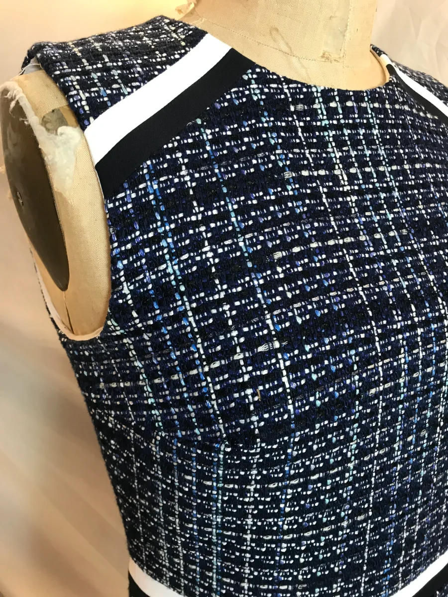 Soyez le premier à laisser votre avis sur “Robe tailleur en tweed marine et blanc”