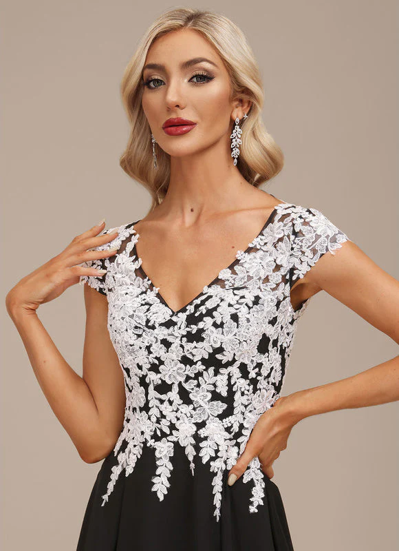 Découvrez cette robe trapèze mi-longue qui allie l’élégance du noir et la délicatesse des broderies blanches. Son corsage orné de motifs floraux en dentelle crée un contraste saisissant avec sa jupe évasée en mousseline noire. La coupe trapèze et la longueur midi flattent toutes les morphologies, tandis que le décolleté en V et les manches courtes ajoutent une touche de féminité parfaitement équilibrée pour vos soirées spéciales.