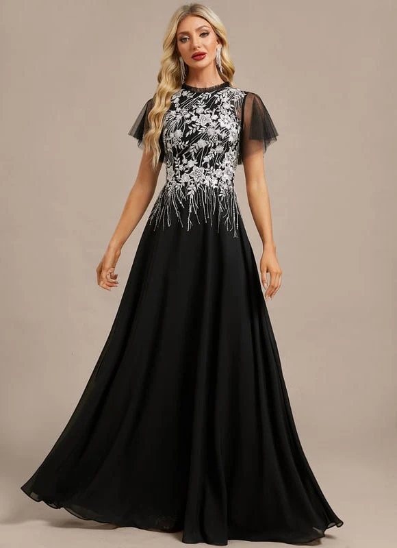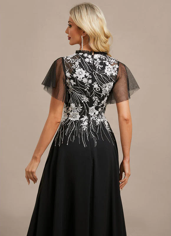 Découvrez notre robe trapèze élégante parfaite pour vos événements spéciaux. Son corsage orné de broderies florales blanches contraste magnifiquement avec le noir profond de la jupe. Les manches courtes en tulle apportent légèreté et romantisme, tandis que la coupe trapèze garantit une silhouette flatteuse pour toutes les morphologies. Cette création d’exception allie sophistication et glamour pour vous faire sensation.