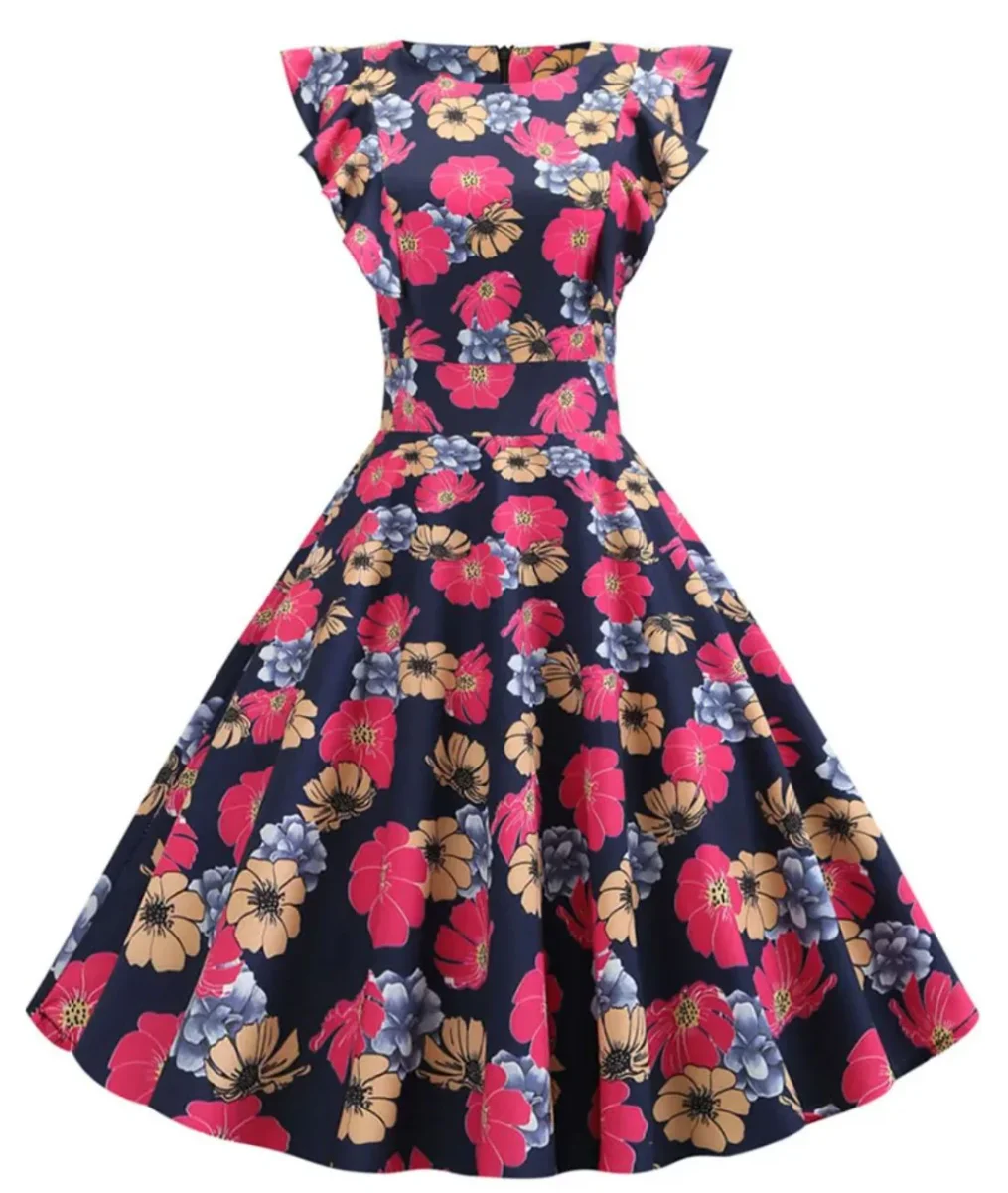 Une robe année 50 est souvent recouverte d’un superbe imprimé floral, ce qui est flatteur, mais cela l’est encore plus avec la forme adaptée !