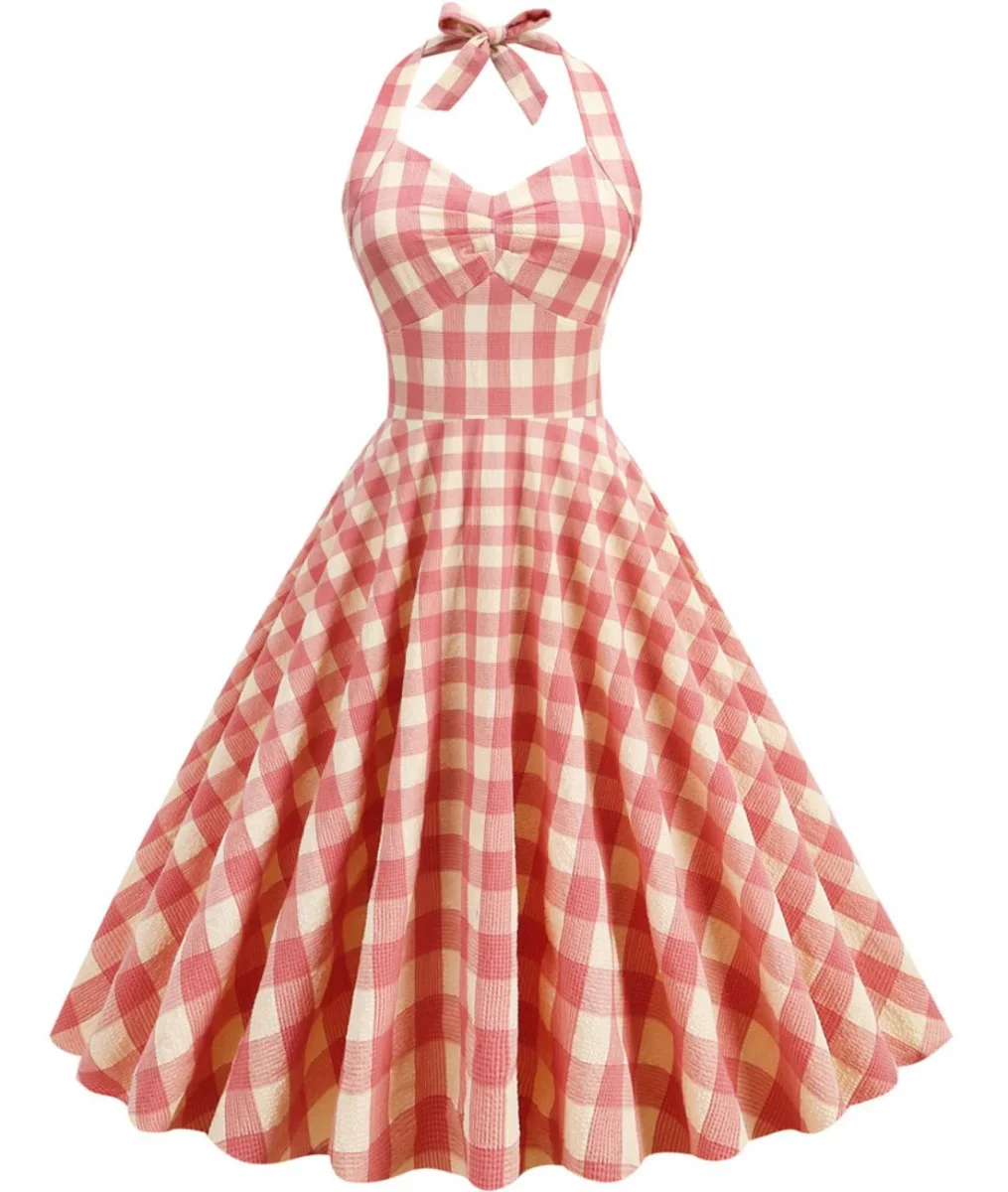 Avec une lanière au dos à nouer pour un maintient assuré, elle rend hommage aux robes de son époque par ses carreaux blanc et rose alternés les uns sur les autres, ainsi que sa coupe droite sans manches. Avec un effet ventre plat que toute femme sait apprécier, tant le rendu une fois portée, est des plus féminins ! Une superbe robe vintage à porter cet été lors de vos vacances ou en week-end.