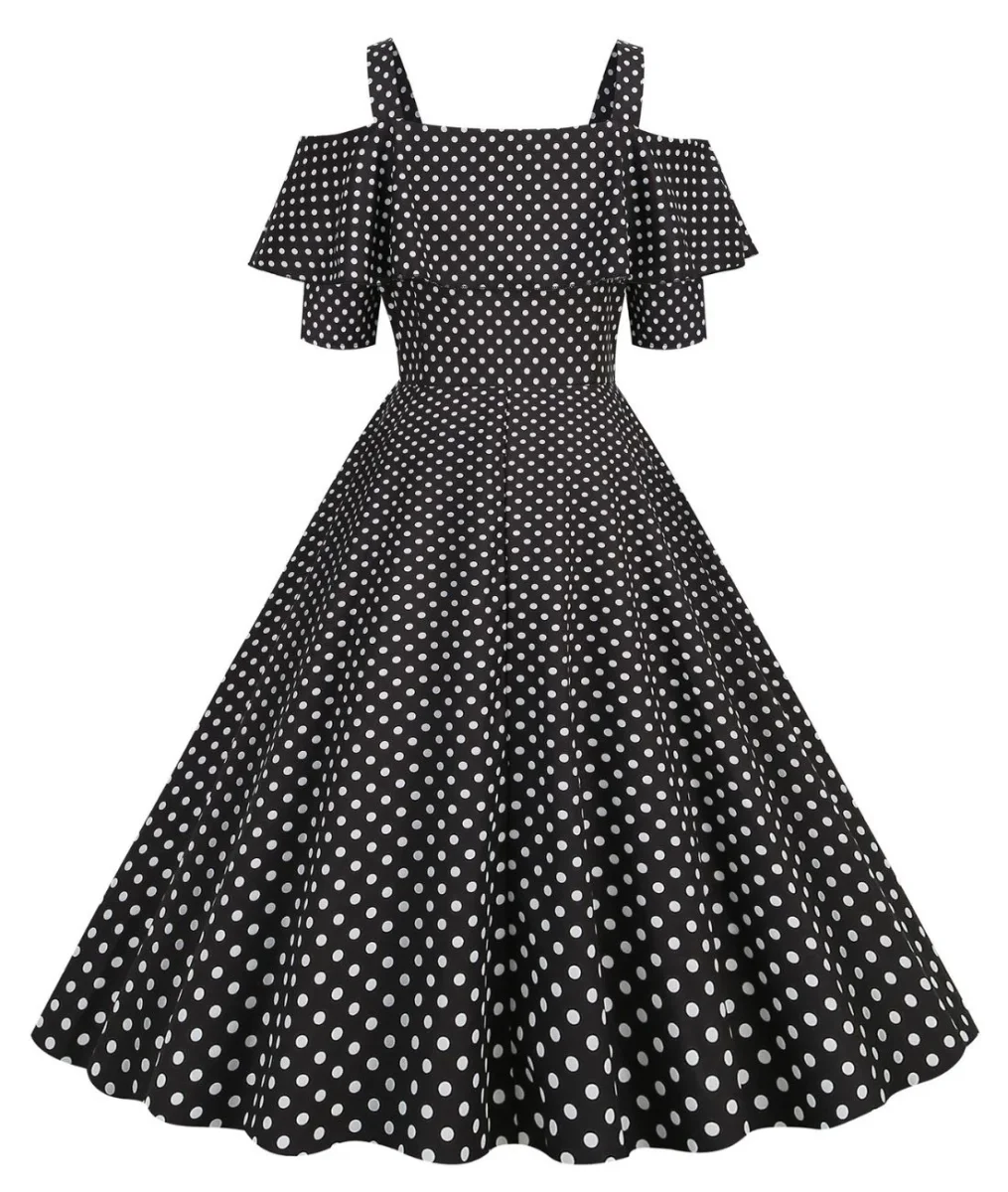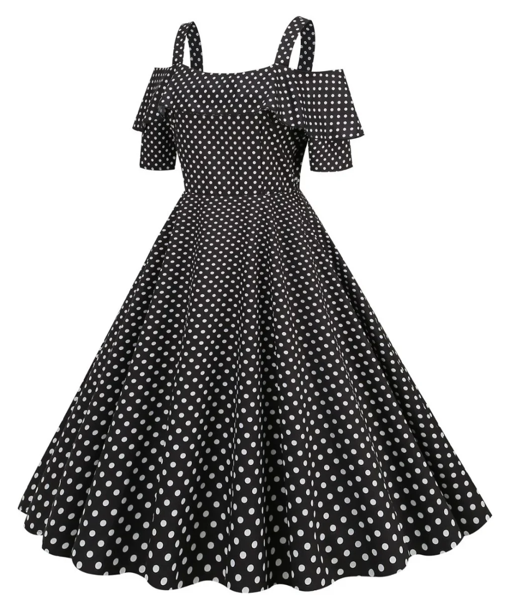 Apprenez à sublimer votre apparence tout en restant dans une élégance non tape à l’oeil avec cette valeur sûre qu’est la robe année 50 60. À cheval entre deux ères, cette robe émane l’essence des années 50 avec sa coupe ample et longue aux jambes, mais son haut assez dénudé sur les manches et un peu au torse marque le début d’une époque ou les femmes choisissaient de plus en plus des coupes courtes. Cette robe, est idéale pour des soirées festives et décontractées, afin de passer des soirées inoubliables !