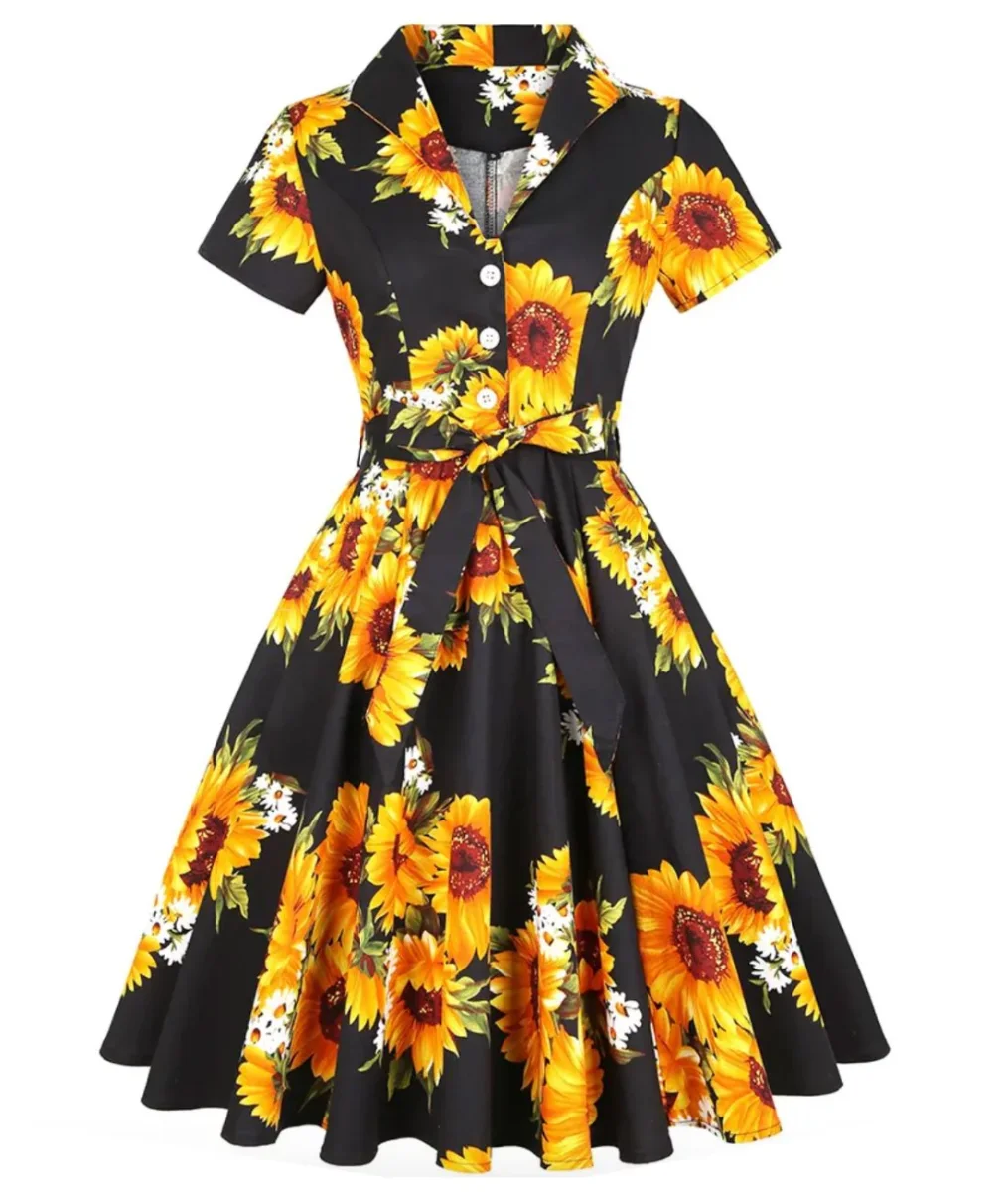 Soyez comme les tournesols, dirigez-vous vers le soleil ! En portant une belle robe vintage.