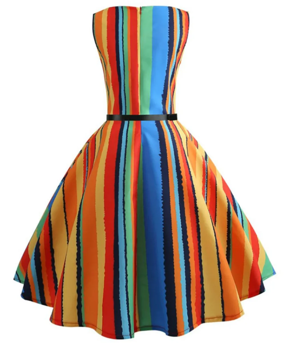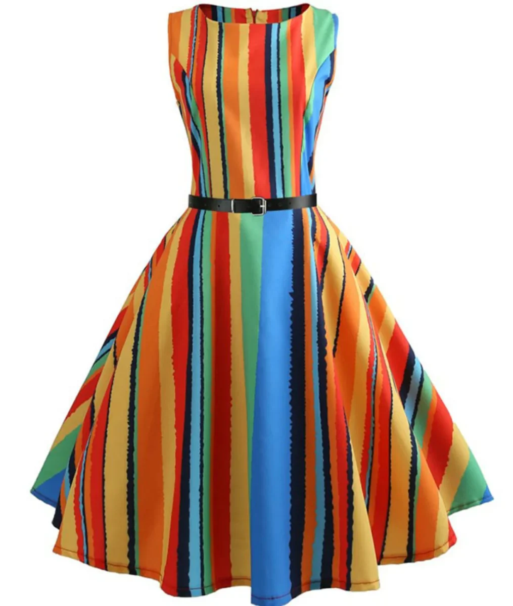Exprimez votre air vintage des années 60 avec notre robe longue multicolore !