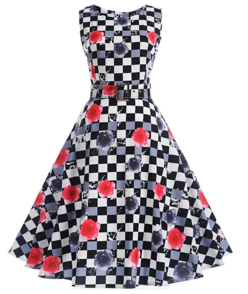 Les imprimés floraux rendent cette robe damier au look pin up plus élégante et romantique.