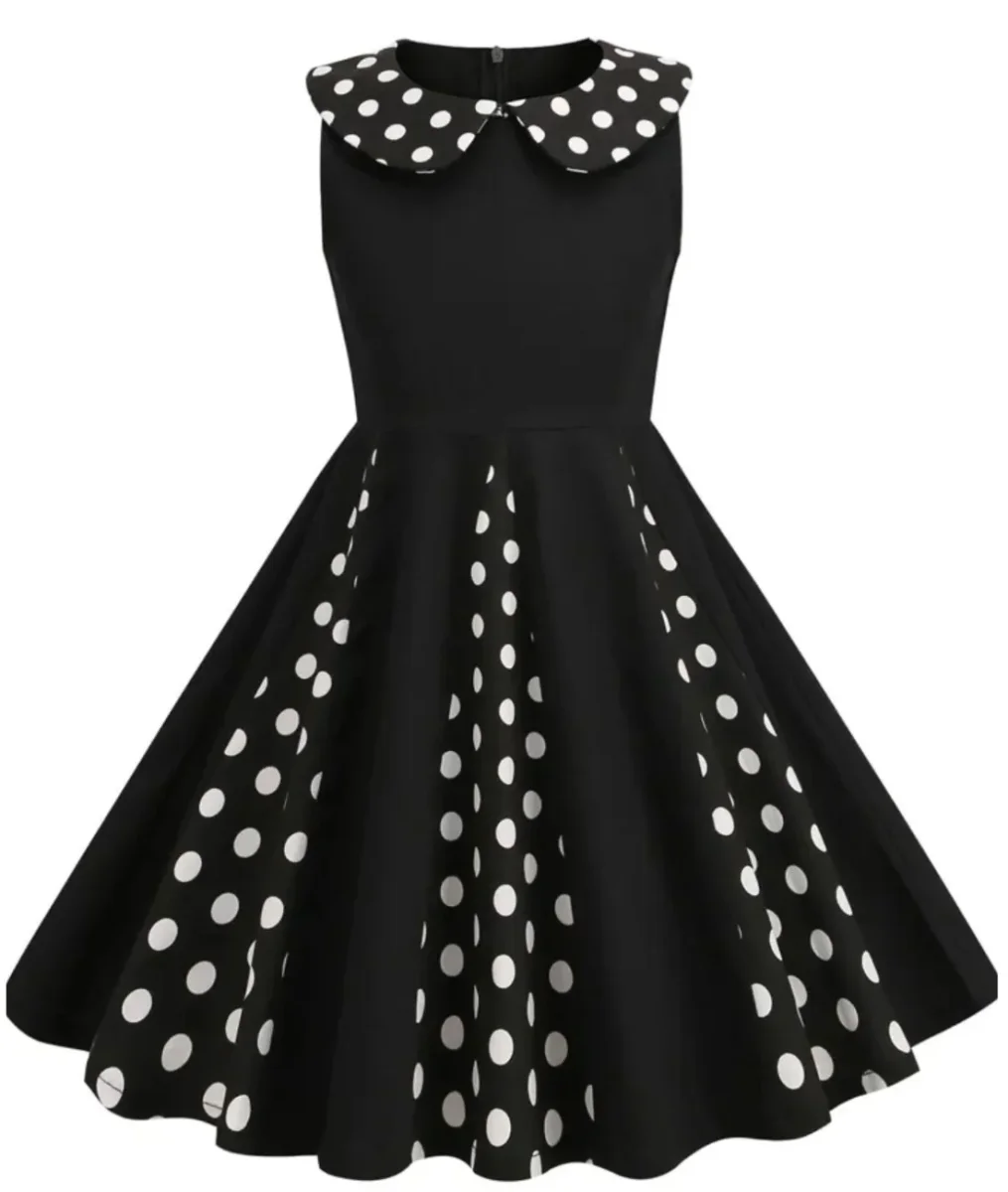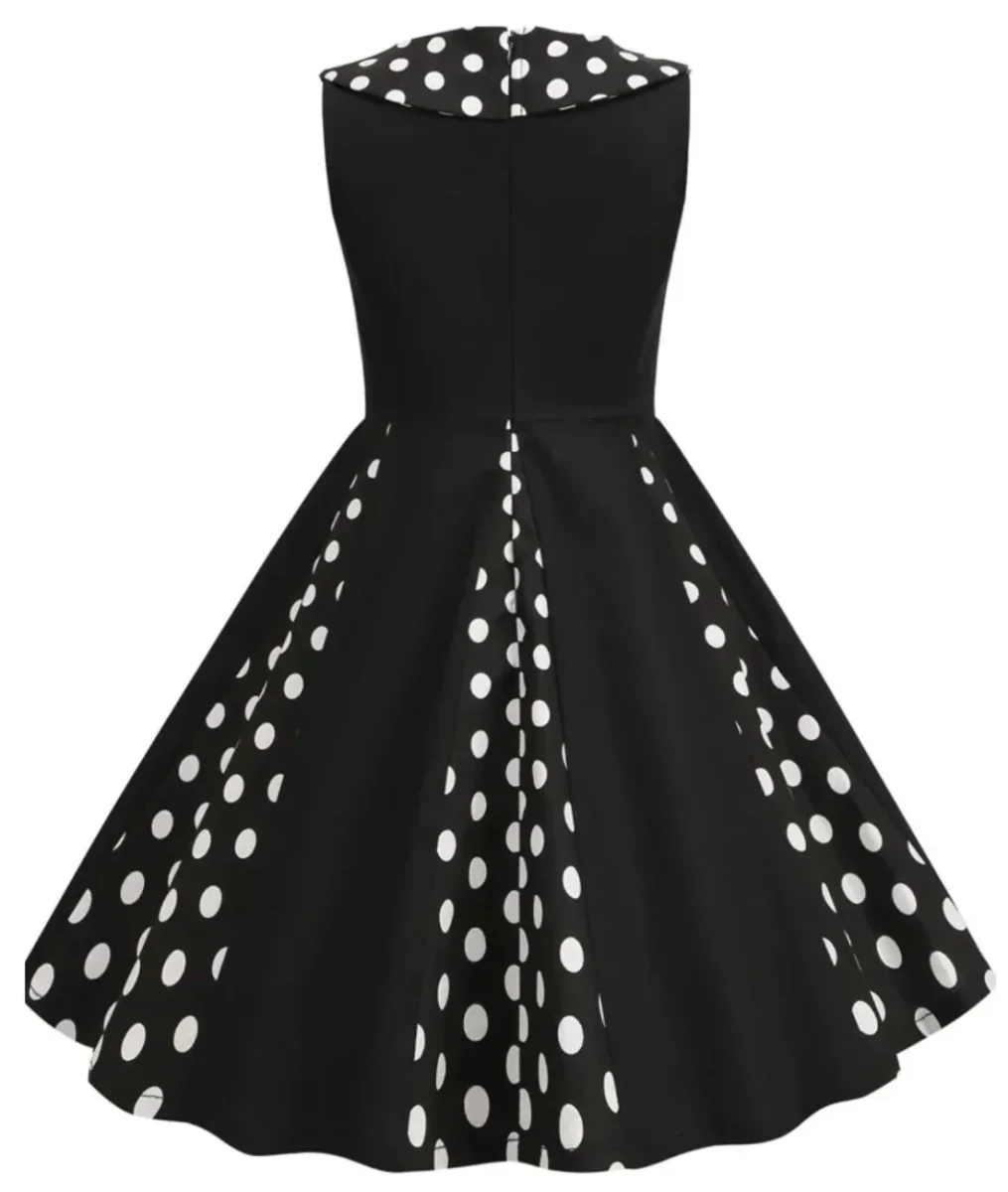Dotée d’un motif à pois parsemé au col et sur l’ourlet évasé, elle affiche un style rétro et classique.