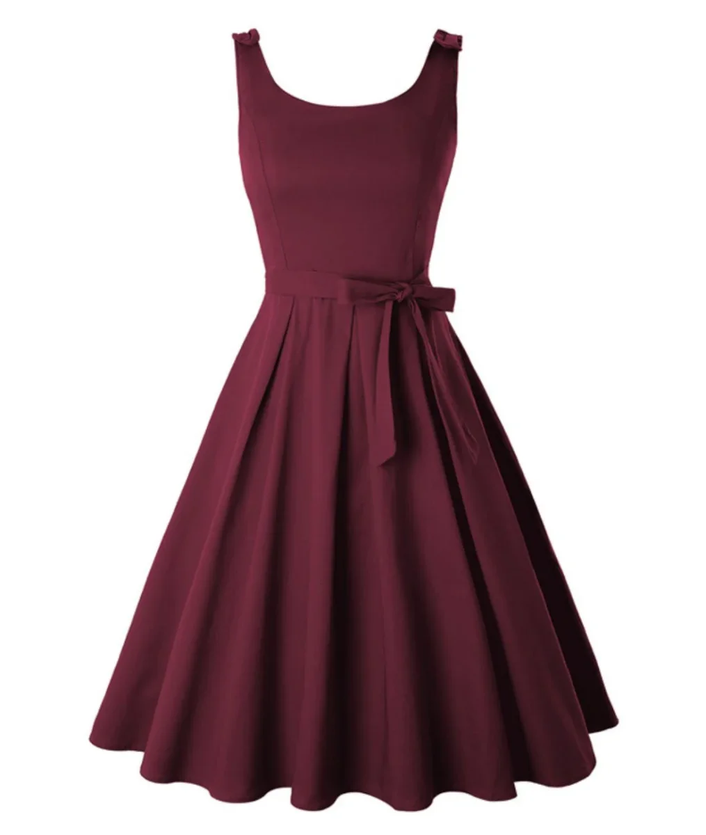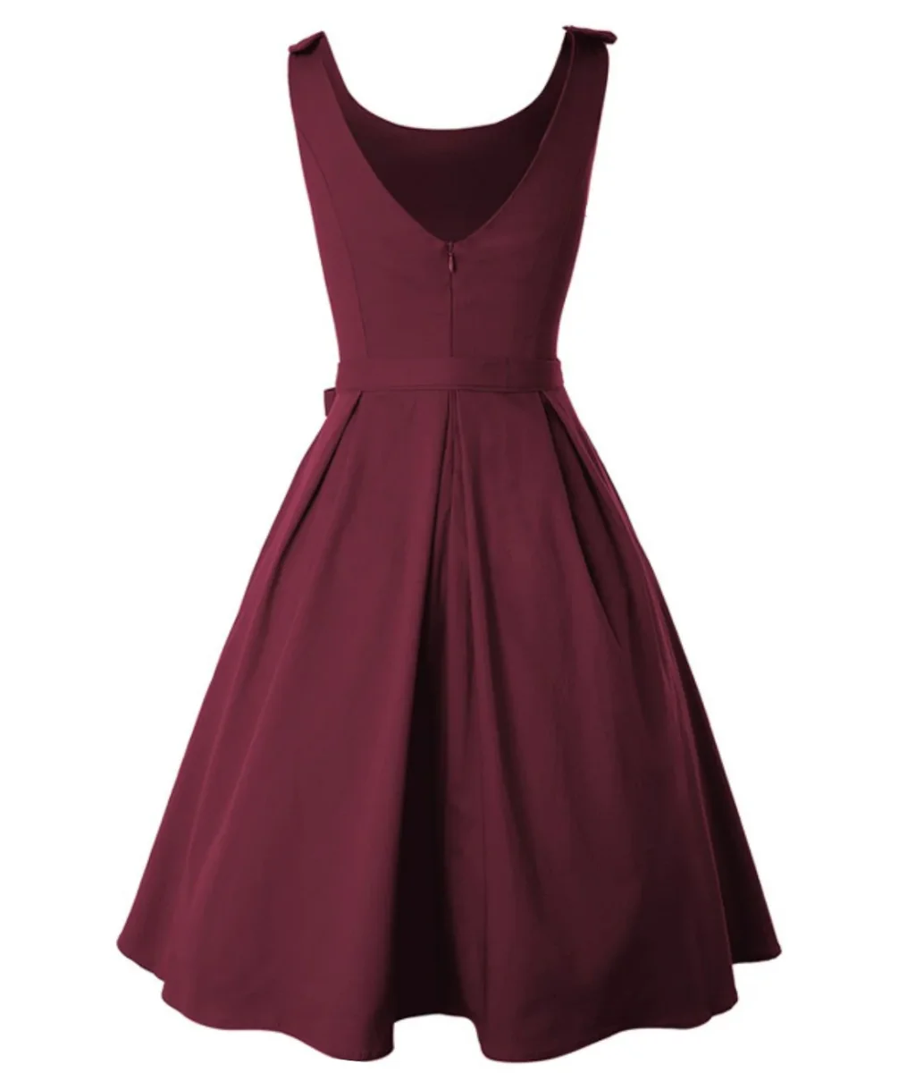 Découvrez notre douce robe de soirée Bordeaux inspirée des années 60.