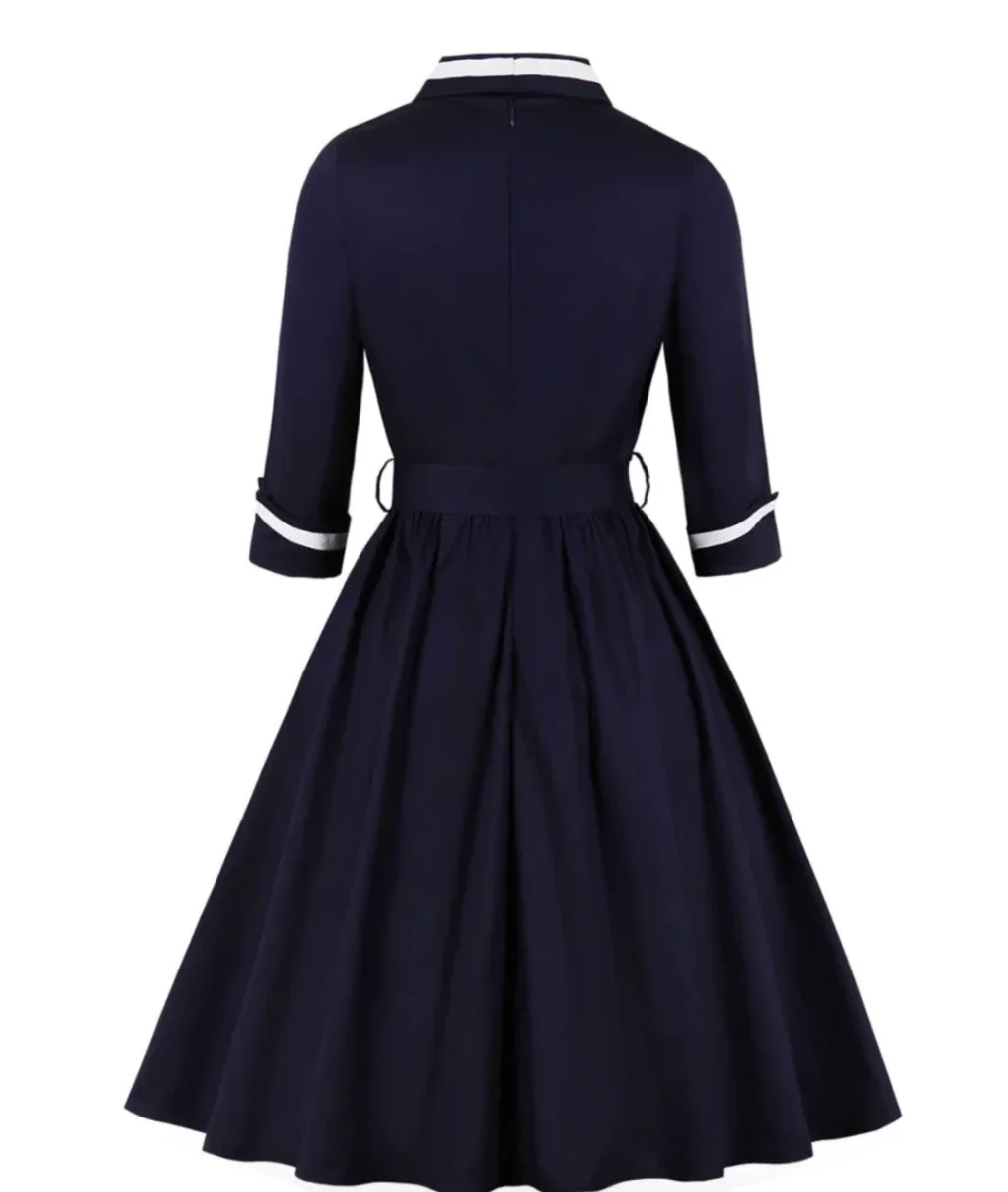 Parmi notre collection de robes du même style, vous seriez susceptible d’aimer la robe des années 40 et son teint jaune clair avec des boutons de fermeture. Un style avec chemise classique pour une robe année 40 qui vous permettra de diversifier votre penderie de robes vintage féminines.