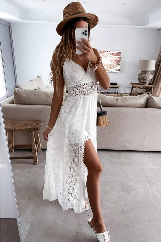 Intemporelle et élégante, cette combinaison à fines bretelles froncées ne se démodera jamais. Cette combinaison accrocheuse présente un col en V et des détails de smocks. Parfait pour une deuxième robe de mariée pour faire la fête ou pour le brunch après. Vous pourrez la réutiliser facilement pour un voyage à la chaleur.