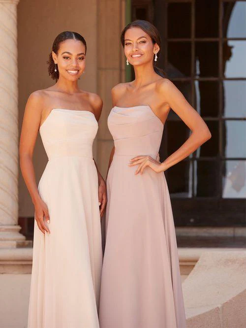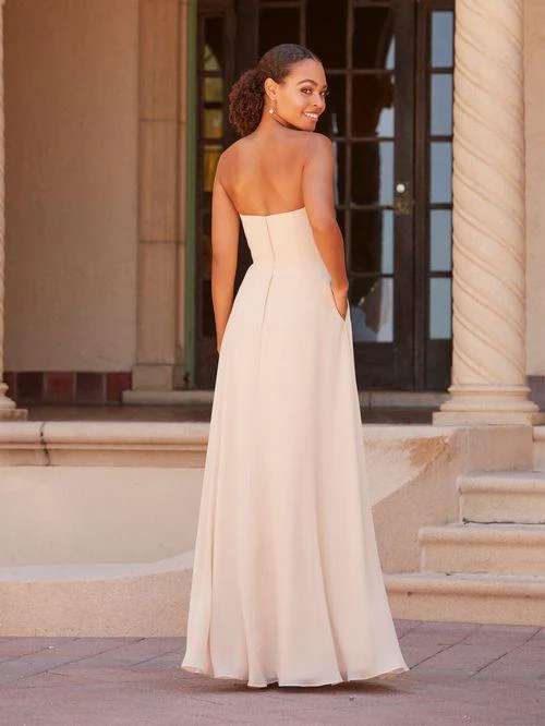 A classic strapless gown, full flowing skirt with side pockets. Perfect for all occasions and waiting for your accessory favorites.
