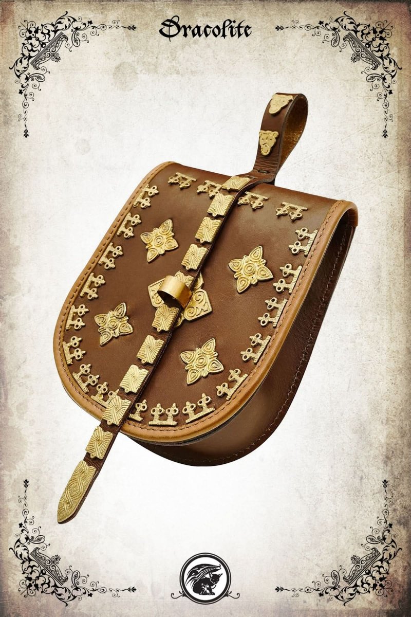 Découvrez le sac en cuir BIRKA TARSOLY orné de décorations en laiton massif. Parfait pour les reconstitutions vikings et le LARP, ce sac s’inspire fidèlement des trouvailles archéologiques de Birka et Rösta. Basé sur les sacs type 3A des steppes hongroises, il reflète l’importation par les Magyars en Scandinavie.