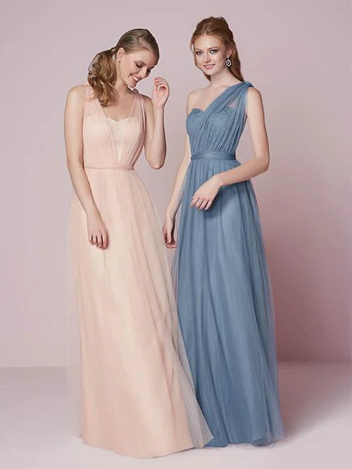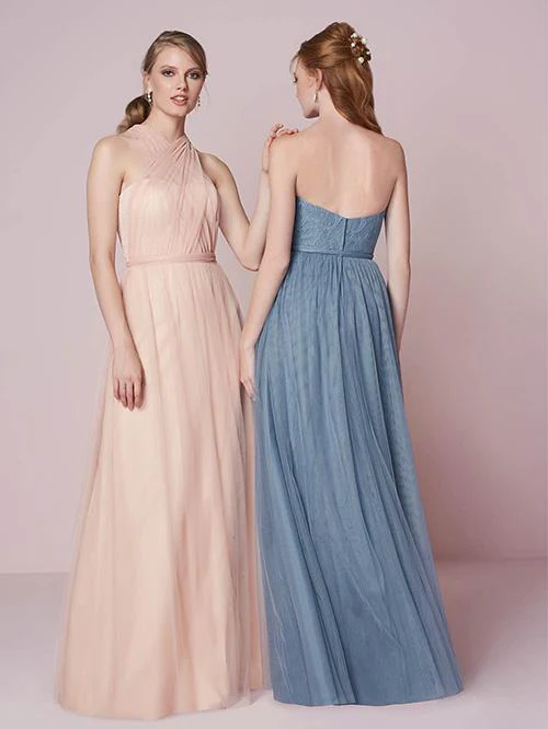 This lace and net multi-way A-line dress features multiple style necklines and soft net skirt.