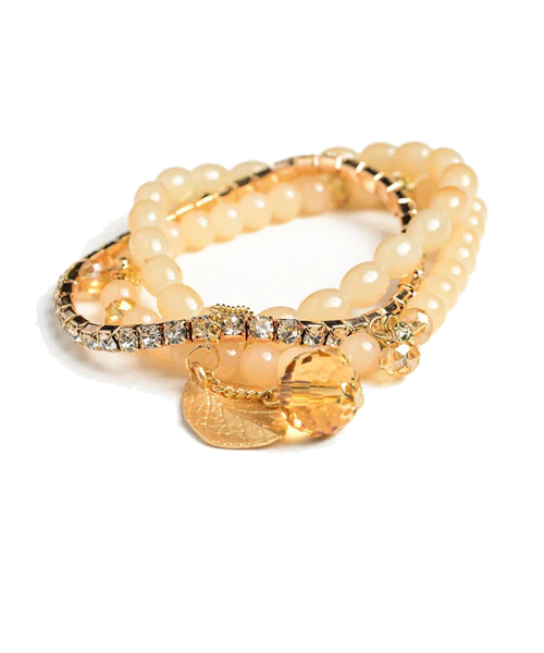 …. Bracelet à plusieurs rangs avec un aspect « vintage » avec ses couleurs douces. Pêche/Or avec pierres du rhin Extensible Importé ..Bracelet with several rows has a vintage look with it’s soft colors. Mix of gold and peach beads with rhinstones Stretch Imported ….