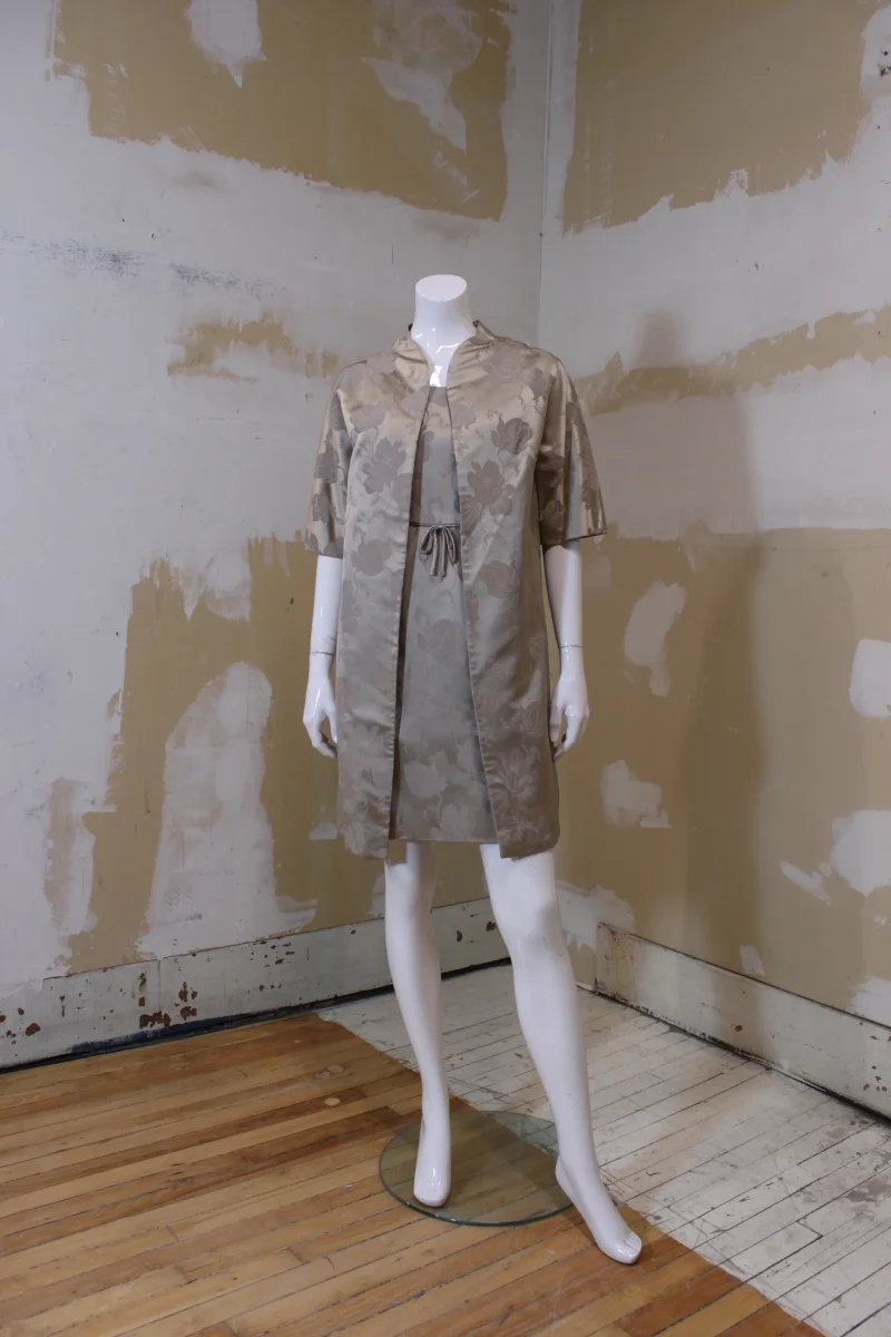 De la marque SALON CÉLINE CHOQUET, Haute Couture, Montréal. Vintage. Probablement faite sur mesure. Manche courte. Style kimono. Robe sans manches assortie vendue séparément. Fit S Épaules 18 po Manches 12 po Longueur 36 po 100 % polyester (Doublure en nylon) Fait au Canada État vintage 10/10
