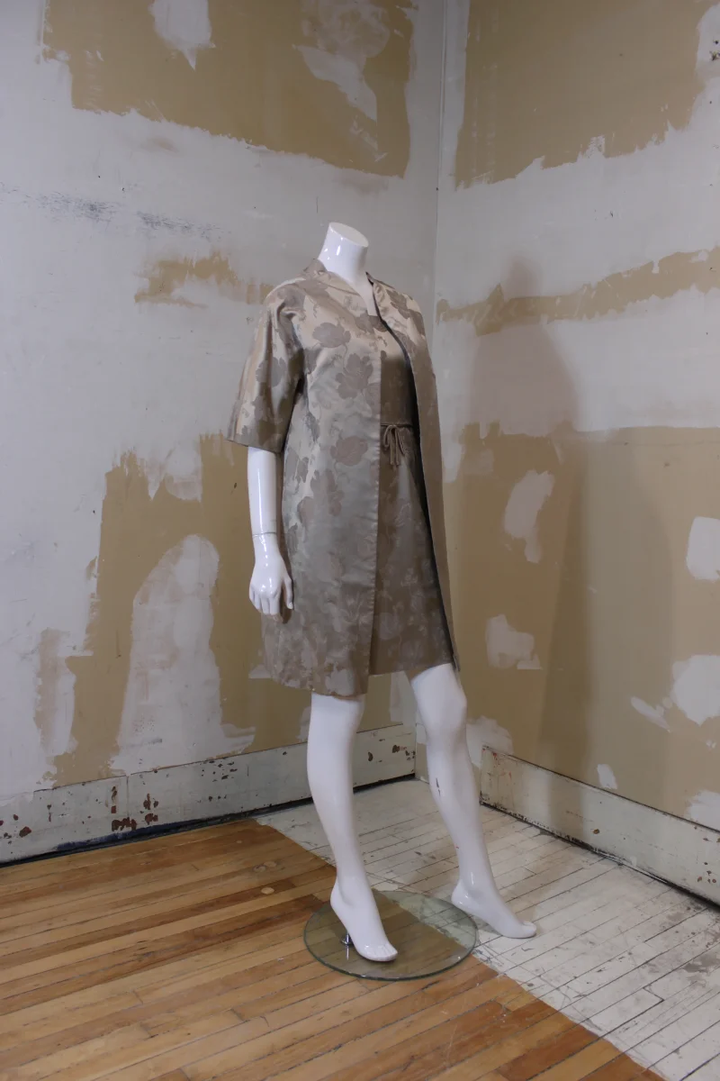 De la marque SALON CÉLINE CHOQUET, Haute Couture, Montréal. Vintage. Probablement faite sur mesure. Manche courte. Style kimono. Robe sans manches assortie vendue séparément.