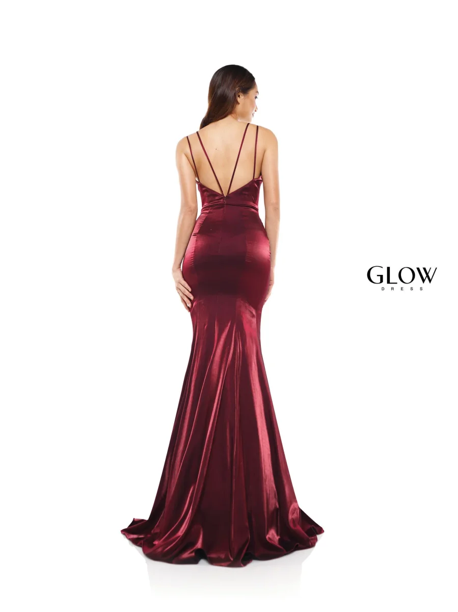 Magnifique robe sirène en satin avec de fines bretelles doubles. Ces bretelles se divisent au dos pour un allure chic. Sa jupe offre une traîne pour un effet glam sans pareil!
