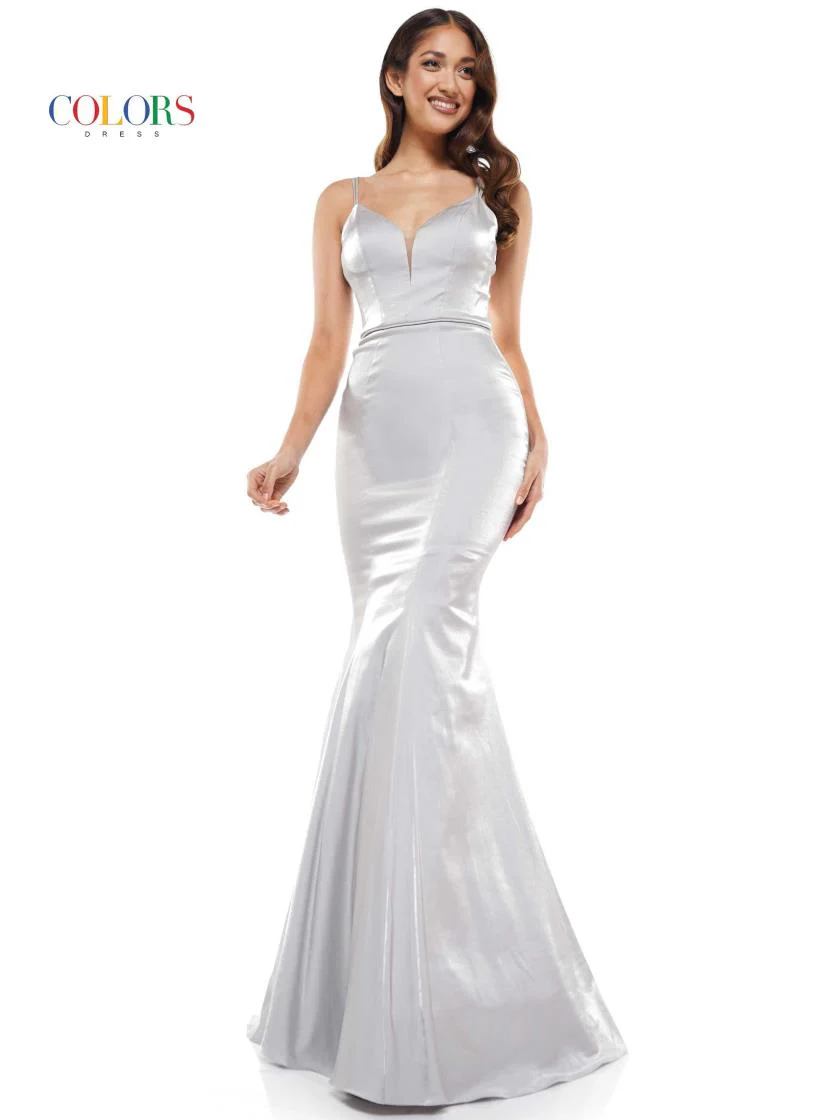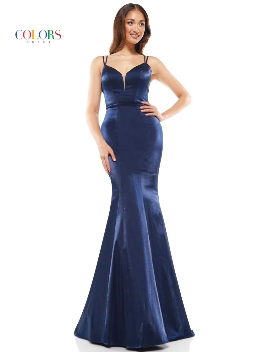 48″ Satin mermaid gown with sweetheart neckline and strappy lace-up back
