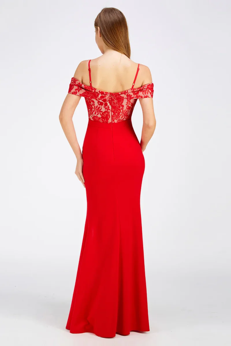 Ladies off the shoulder straps slit dress. Maxi lace dress.